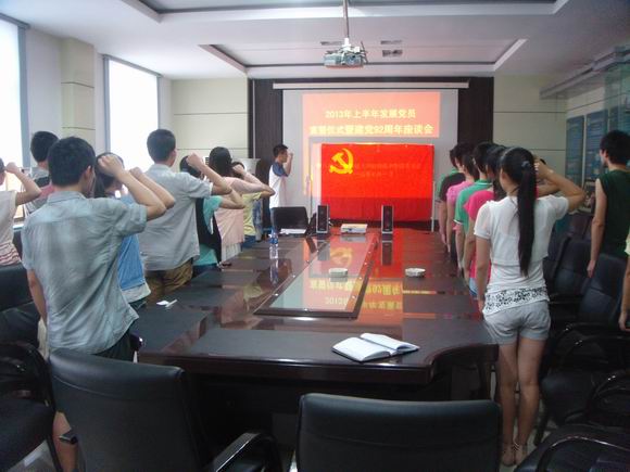 7月1日下午,新葡萄8883官网AMG党委在学院二层会议室隆重举行了2013年上半年发展党员入党宣誓仪式暨建党92周年座谈会。学院党委书记吕振武、学院党务秘书以及辅导员参加座谈会。