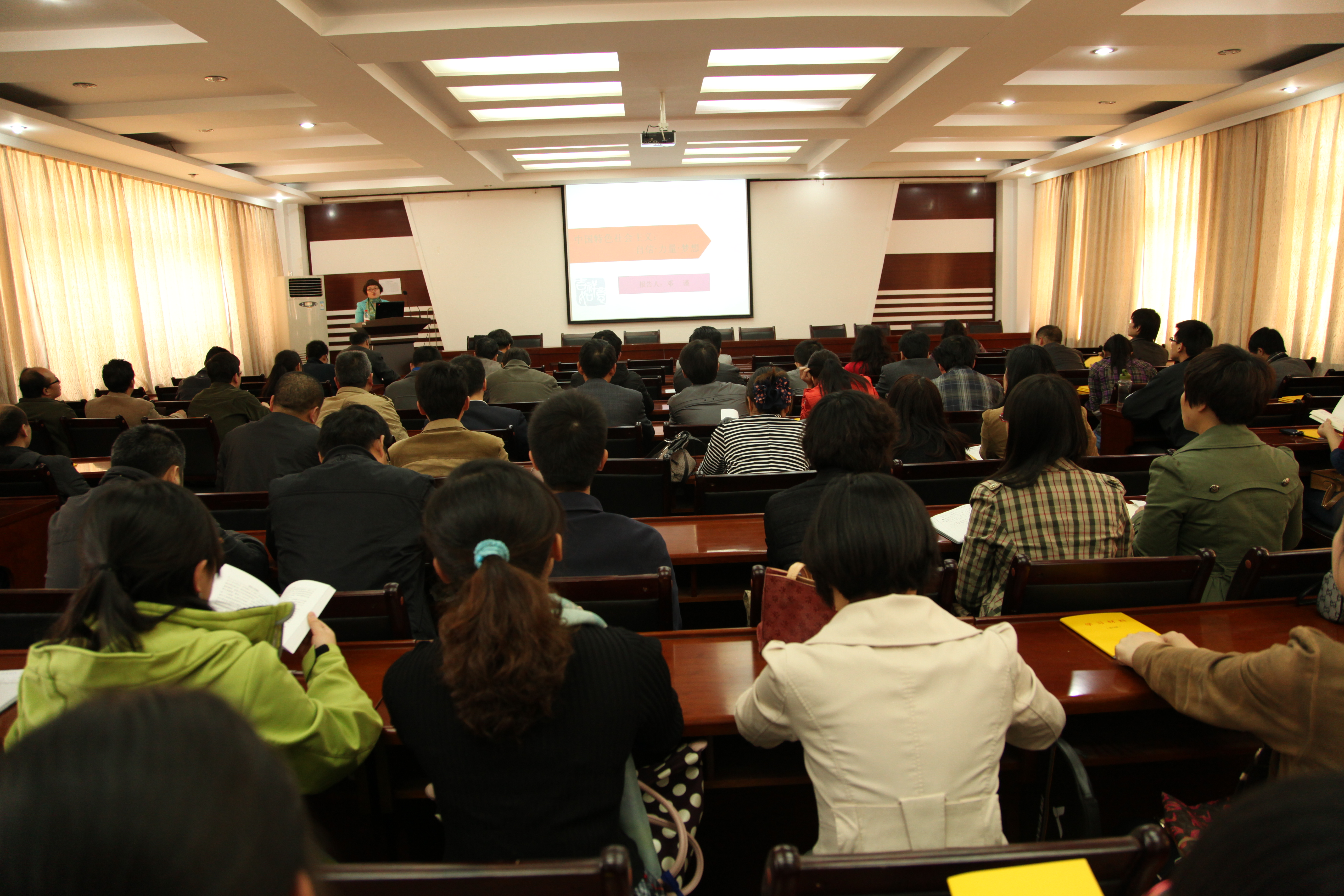 4月11日下午,新葡萄8883官网AMG在6B三层会议室,举行“学习贯彻党的十八大精神”辅导报告会,全体教职工和研究生、本科生学生党支部委员参加了报告会。本次辅导员报告会由学校宣讲团成员思政部邓谨老师主讲,学院党委书记吕振武主持。