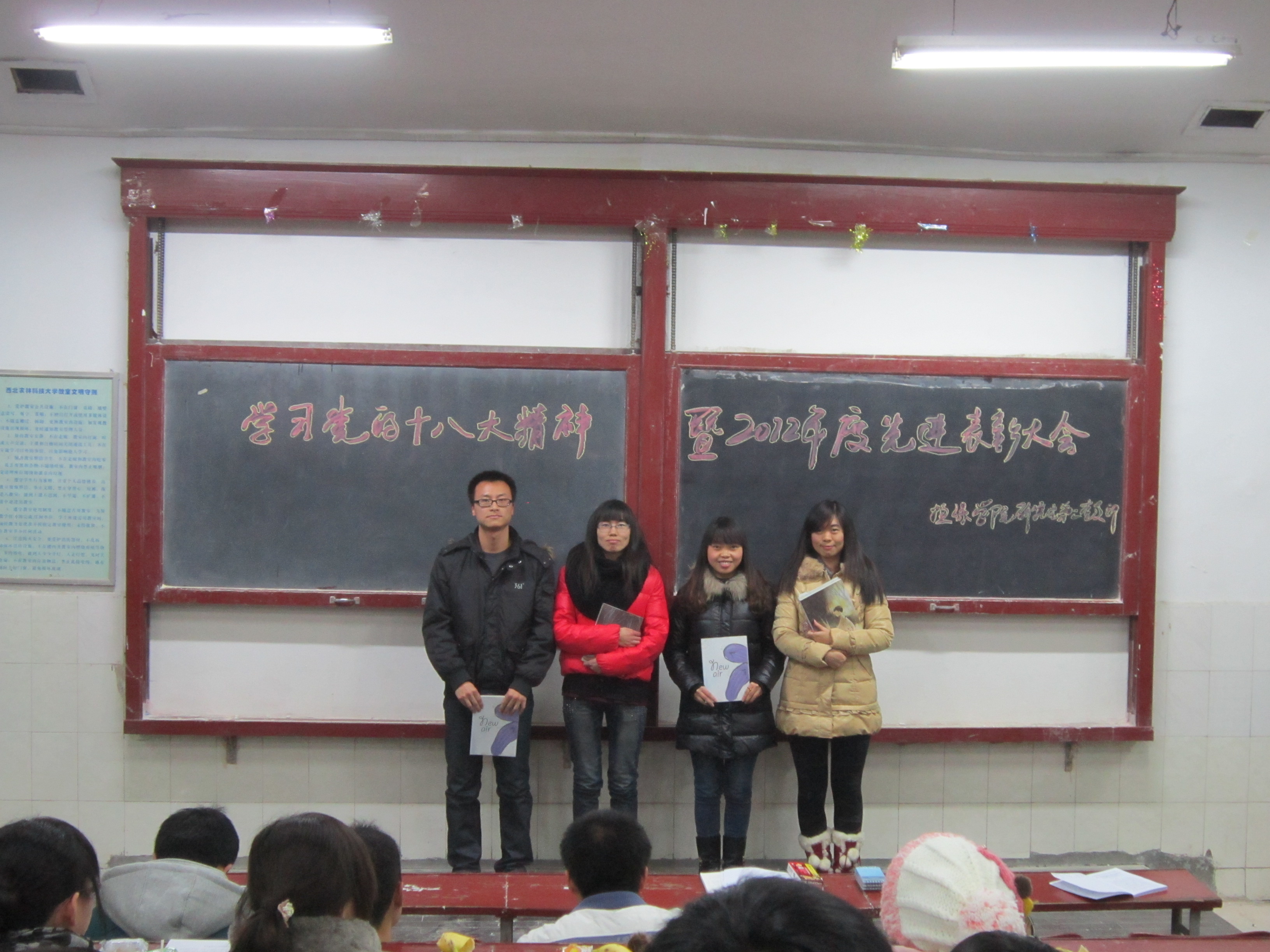 其次,支部展开了2011~2012年度工作总结与评优,对这一年来各优秀党员,预备党员,优秀培养人以及优秀培养对象进行了表彰鼓励和经验交流,在以后的工作中,优秀的党员要发挥模范带头作用,为大家更好地服务,为支部建设贡献自己的力量。