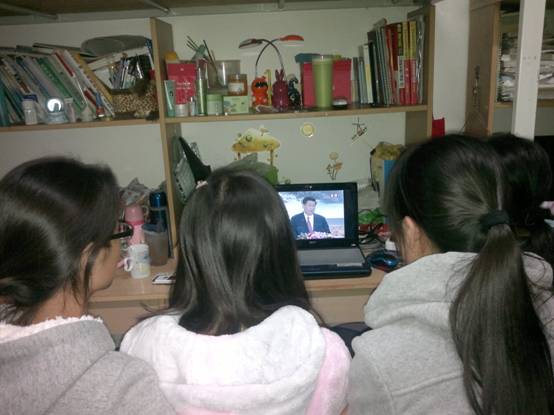 同学们积极响应支部号召,积极组织班级,宿舍同学观看十八大,并积极讨论了自己关心的主题等,纷纷感慨祖国的强大,称赞我们党的正确领导,并表示作为新一代党员,一定会努力学习科学文化知识,团结同学,创先争优,做好模范带头作用,做到一名党员应该做的事情。