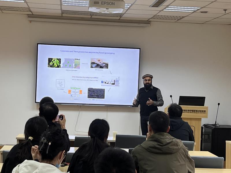 Associate Prof. Ali Sajid has long been engaged in research on wheat stripe rust, and made an academic report on "Population genetic tools for deciphering diversity in crops, their wild relatives and their pathogens to enable sustainable crop production" for teachers and students from our college. During the report, he actively interacted and communicated with the people who attended the meeting, and discussed relevant scientific research progress with young faculties.