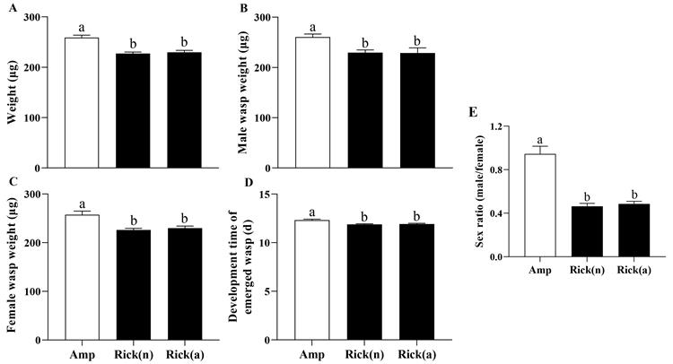 The results showed that the presence of the target facultative symbiont had no significant effect on the parasitism rate and emergence rate of parasitoids. However, interestingly, the study found that the presence of the target symbiont promoted the fitness of host aphids and simultaneously affected the fitness of parasitoid offspring, such as reduced body weight and increased feminization (Figure 1), thereby indirectly regulating the population size of host aphids.