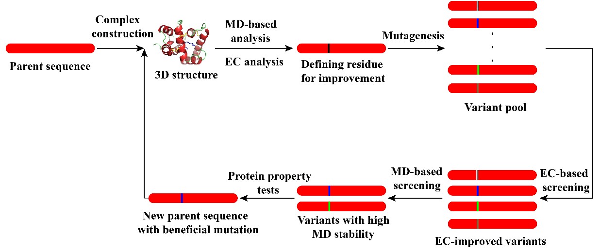 Proteins have a wide range of applications in many industries such as agriculture and medicine. However, natural proteins often have poor properties (such as low stability and low activity), so they need to be rationally designed to overcome their own defects. This study constructed a protein rational design strategy based on electrostatic potential complementarity (EC) and molecular dynamics workflow (MD-based workflow). This strategy, focusing on the interaction characteristics of proteins and ligands, uses EC and MD technologies to accurately locate the amino acid residues that need to be mutated in the target protein, and rationally screens for beneficial mutations to achieve rapid accumulation of beneficial mutations in the target protein. The modified SlitPBP1 protein (SlitPBP1E97ND106E) significantly improves its binding ability to pyrethroids, and its binding ability to deltamethrin even reaches the nanomolar level. Compared with commonly used protein design strategies such as directed evolution and machine learning, this strategy avoids the blindness of residue mutations and does not rely on the large amount of protein sequence-function information required for machine learning. It has advantages such as simplicity, efficiency, and wide applicability, and can be used for precise targeted design and optimization of biological macromolecular drugs such as proteins.