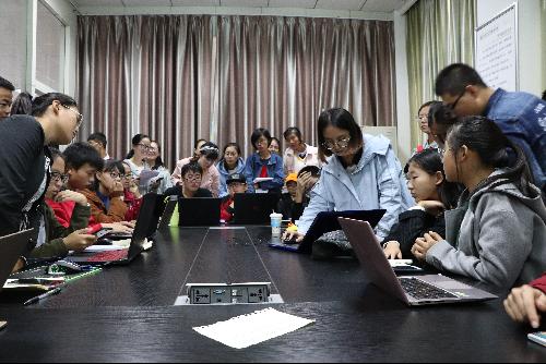 同学们向徐瑞同学询问PS操作的问题
