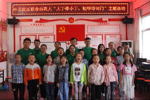 在活动的最后,为了让孩子们更好的感受诗词的魅力,激发他们的学习兴趣,队员们播放了一首《琵琶行》。活动结束之后,服务队队员们与孩子们合影留念。