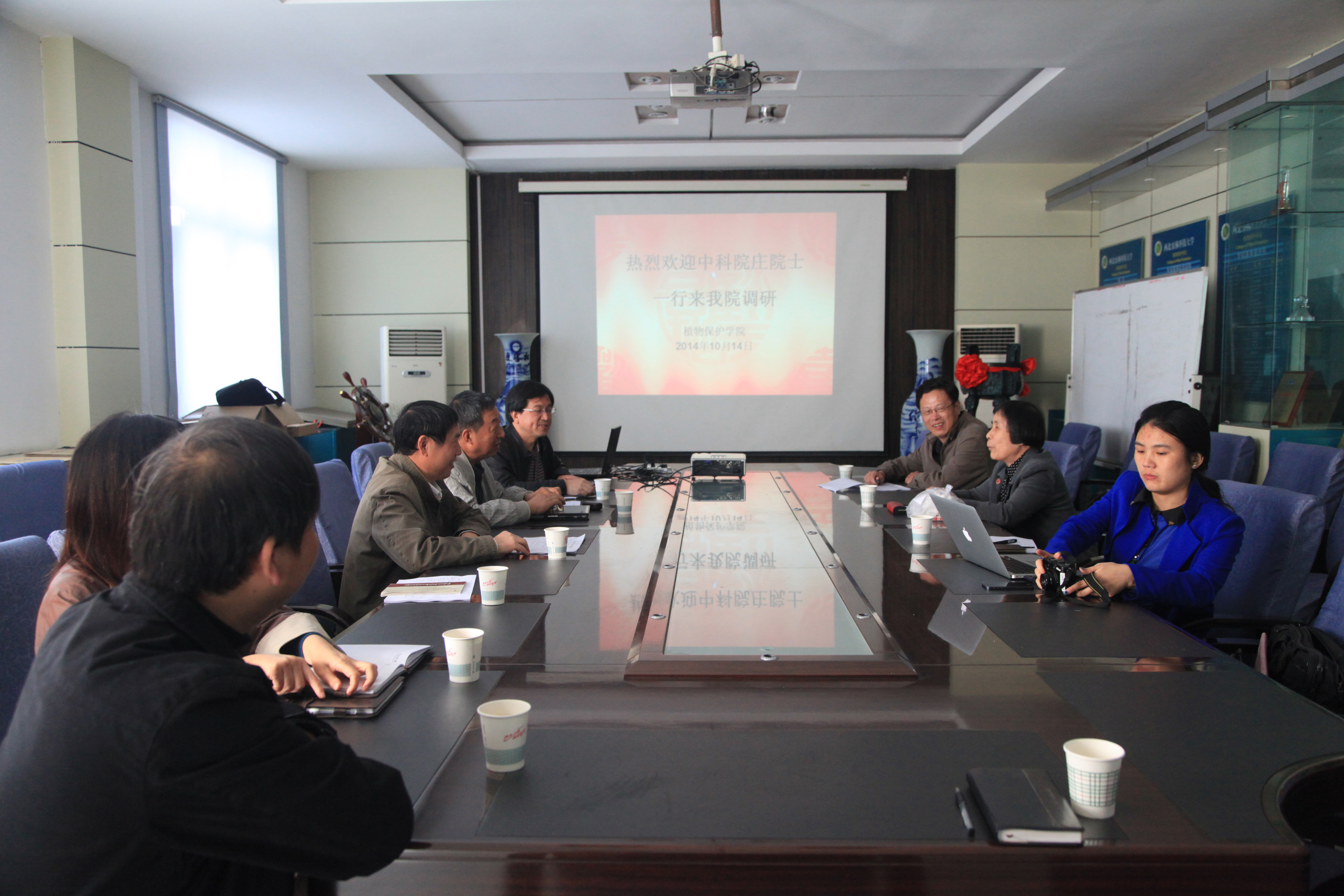 10月14日下午,庄文颖院士一行与新葡萄8883官网AMG主要领导和分类学方面的部分研究人员进行了座谈。教育部“高级领军才”特聘教授、新葡萄8883官网AMG康振生教授、常务副院长冯纪年教授、孙广宇教授等参加了座谈会。庄院士一行听取了学院孙广宇教授关于西北农林科技大学在真菌系统学(分类学)的历史传承、人才培养、研究现状、标本室建设以及未来的发展规划的汇报,并查阅了发表的相关论文及标本管理材料。座谈会结束后,庄院士一行实地考察了标本室。