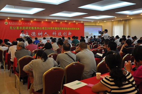 2014年8月31日上午9:00,西北农林科技大学无公害农药研究中心成立20周年暨张兴教授执教40周年庆祝大会在杨凌举行。此次大会的主题为“立德树人,科技创新”,由无公害农药研究服务中心和新葡萄8883官网AMG农药学科点共同承办。与会人员有,副校长兼研究生院常务副院长吴普特,校党委宣传部部长闫祖书,校科学技术发展研究院常务副院长韦革宏,植保学院党委书记吕振武、常务副院长冯纪年、副院长相建业、吴云峰,植保学院张雅林教授,以及其他校内外科研院所相关专家,行业协会及省内外农药企业,校友代表与农药学科点师生等。