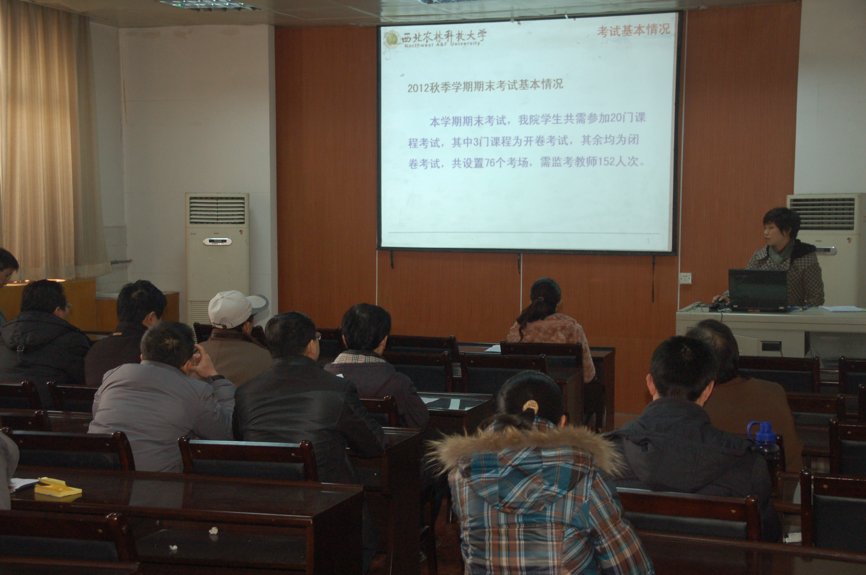 培训会上,教学管理人员详细解读了《西北农林科技大学考试监考提示》、《西北农林科技大学考试监考规则》和《西北农林科技大学监考工作流程》等文件,并对普通本科生课程考试考场记录单和试卷袋规范填写做了说明,与此同时,结合本学期8-18周考试巡考情况,重点介绍了考前、考中、考后监考人员的职责及注意事项,最后就新葡萄8883官网AMG2012-2013学年第一学期期末考试的监考安排做了部署。