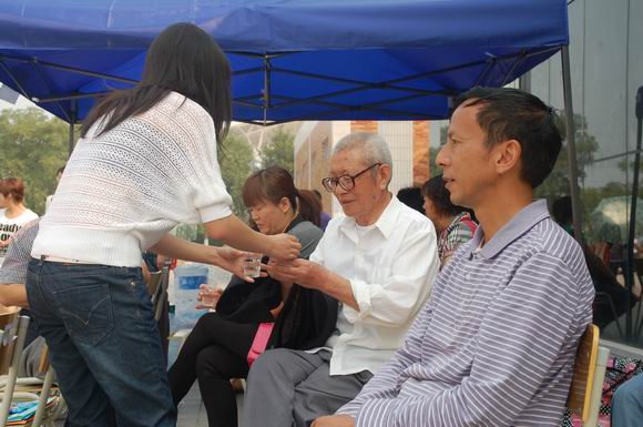 新葡萄8883官网AMG学生为等候在临时休息区的家长端来茶水