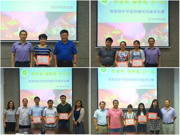 为贯彻落实“立德树人”根本任务,推进“两学一做”学习教育,进一步把“学王辉、鼓士气、创一流”活动推向深入, 6月24日下午,植保学院在第一会议室举行了以“学榜样,铸师魂,争一流”为主题的“师德师风”演讲比赛。党委宣传部部长闫祖书、教师教学能力发展中心主任陈遇春、校工会副主席史明霞、教学名师花保祯、黄丽丽(教学副院长)担任比赛评委,学院党政负责人、各教学系主任及学院部分40岁以下青年教师观看比赛。