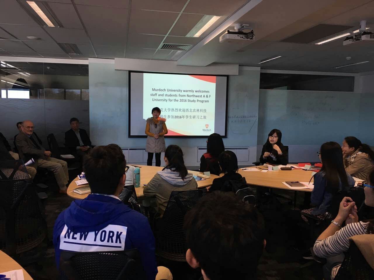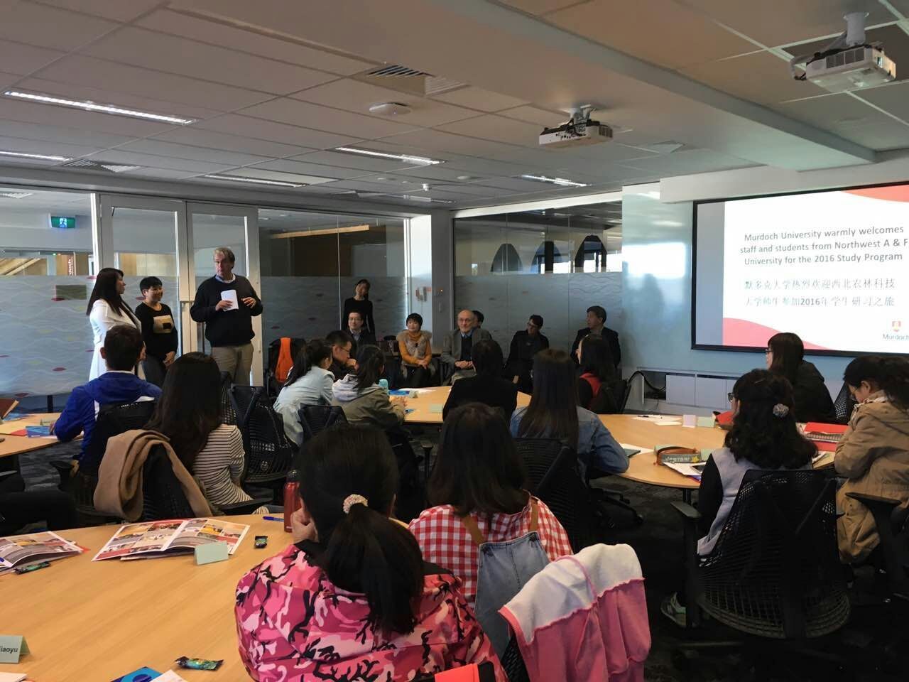 7月25日上午十点,访学团开班仪式在默多克大学ECL大楼举行。开班仪式由默多克大学Prof Richard Harper主持。首先默多克大学兽医及生命科学学院(School of Veterinary and Life Science)院长Prof David Hampson致辞,Prof Hampson对访学团的到来表示热烈欢迎,并高度赞扬了西北农林科技大学前几期的访学交流活动。随后默多克大学Prof Yonglin Ren提出了对访学团的期望和鼓励,希望同学们自信大胆,踊跃表现。接着,访学团学生依次自我介绍,同学们流利的口语和自信的态度赢得了在场老师们的一致好评。在默多克留学的新葡萄8883官网AMG植保学院校友Dr Lijun Cai 和葡萄酒学院校友Dr Yong Jia又和师生们分享了他们的留学经历,鼓励同学们努力学习追逐梦想。最后,访学团带队老师李永强副教授代表访学团全体成员对默多克大学的周到安排表示感谢,他表示访学团在默多克期间将按照学习计划安排好各项事宜,同时也希望同学们能够有所收获。