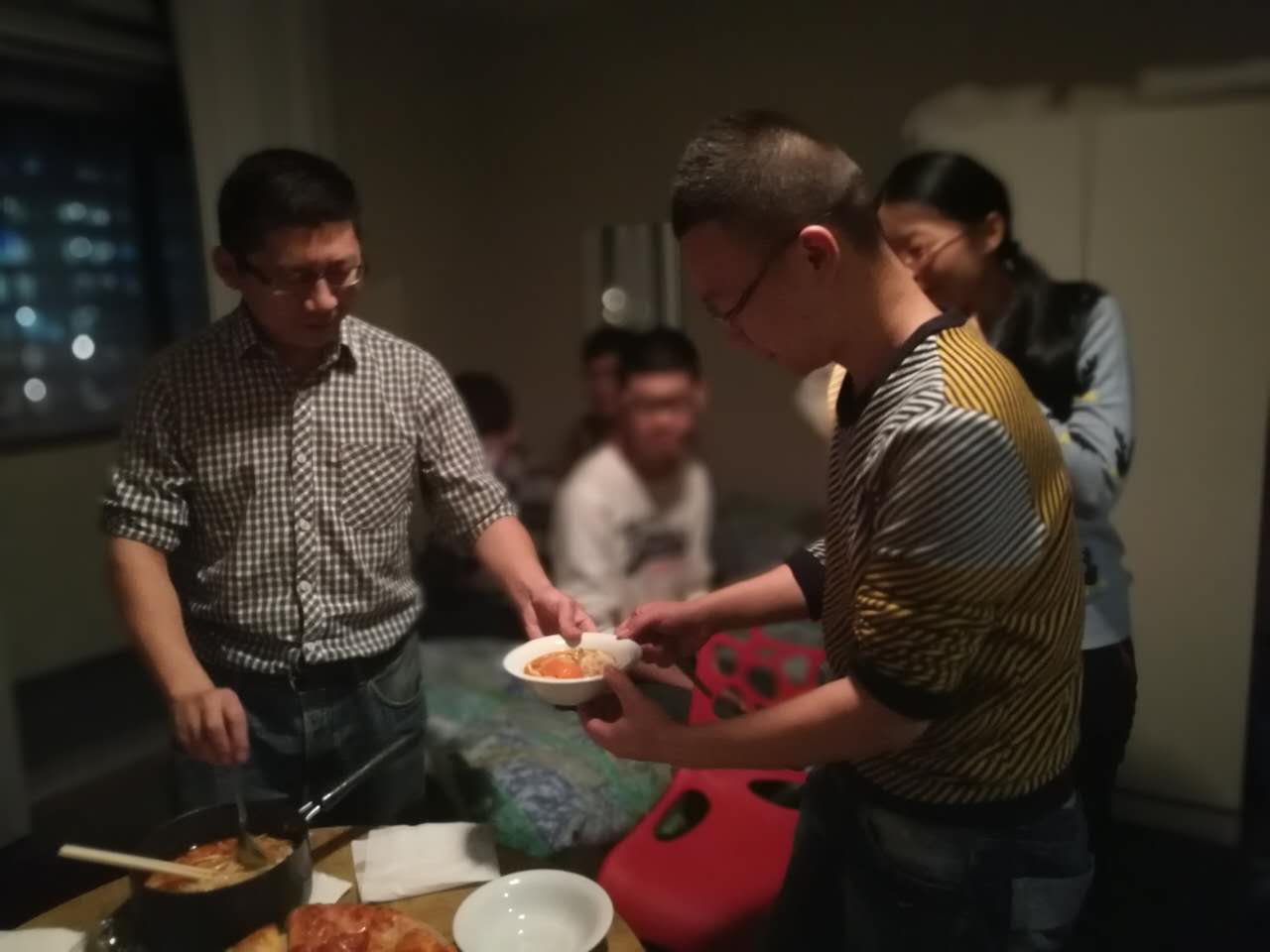 晚上八点,老师和同学在我们宿舍齐聚,一场简单却温馨的生日party将在这里举行。今天是我的生日,令我惊讶的是访学团的徐文倩居然和我同一天生日,真是缘分!以披萨为蛋糕,以老师煮的臊子面为长寿面,以timtam为点心,陪伴我的是老师同学,唱着生日快乐,道尽祝福与希望。更令我感动的是,在老师的提议下,买了贺卡,一人写一句生日祝福赠予我。这张贺卡,包含了老师与同学对我的美好祝福,很有意义,我以后定会好好珍藏。