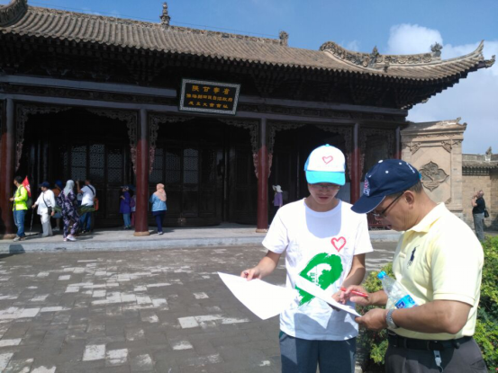 在大会旧址前,面对着四处参观游访的游客,我们展开了一系列活动,通过问卷调查进行了形式多样的宣传活动;并且询问大寺阿訇,倾听老一辈的红色事迹。在我们的带领下,给各地游客带来了很好的影响,使大家对历史史实能够加深了解,对于红色精神能够更加感悟。