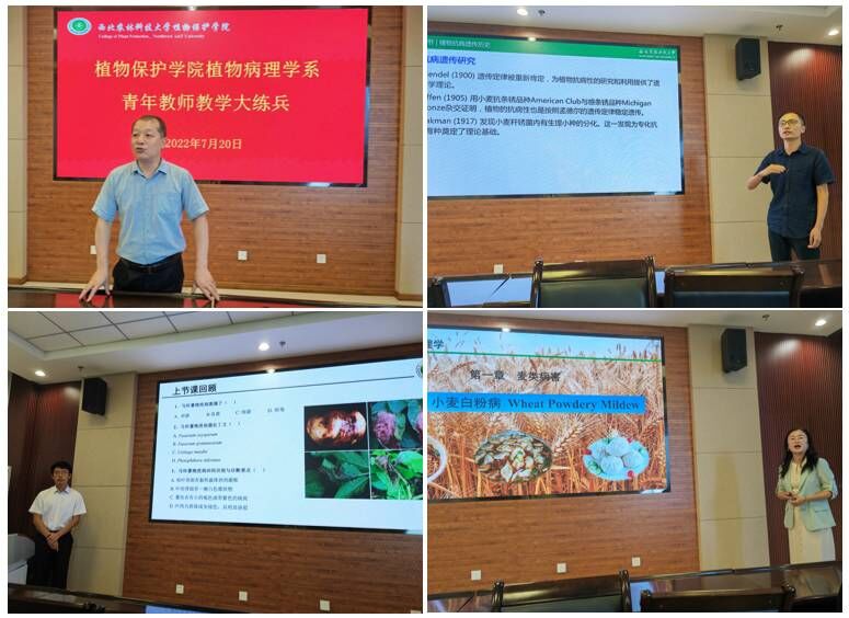 7月20日,植物病理学系在学院426会议室开展教学大练兵活动。本次活动邀请马青教授、张荣教授、赵杰教授和冯浩教授担任点评嘉宾,5名青年教师参加。