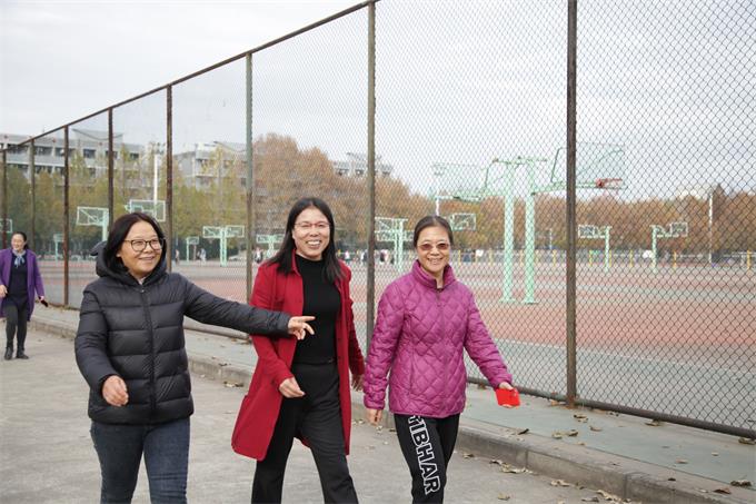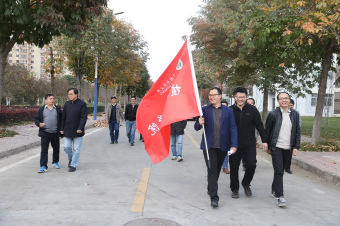 在百忙中抽空参加活动的花保祯教授,步伐矫健的跟陈红书记交流着工作动态。吴云锋和孙广宇教授边走边聊,寻找校园美景的同时,不忘记沟通专业领域的问题。