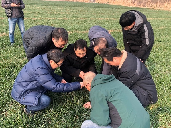为掌握陕西省小麦条锈病的初期发病程度,做好条锈病的测报工作,指导麦田除草及科技壮苗,2月11日,新葡萄8883官网AMG植保学院康振生院士率国家小麦产业技术体系专家胡小平、王晓杰、王保通、曾庆东等一行,与咸阳市植保站、兴平市植保站、宝鸡市农业局、宝鸡市农技中心、眉县植保站等单位相关人员一起,在陕西兴平市、眉县、陈仓区、金台区开展了条锈病监测及小麦返青情况考察。专家组提出了“促弱转壮,早发稳长,适时除草”的科技壮苗具体措施,并依据考察发现的条锈病发病中心情况,提出了“做好监测,打点保面,防小防早”的防控策略。